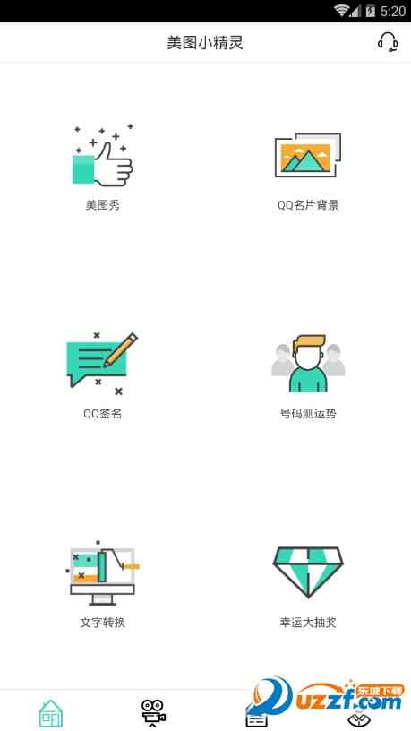 3. 安装完成后 打开美图小精灵APP,即可看到包含美图秀、QQ名片背景、QQ签名、号码测运势、文字转换以及幸运大抽奖等功能,准确地说...。