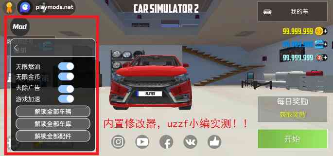 汽车模拟器2内置修改器是一款非常逼真的模拟驾驶手游, 在游戏中玩家可以驾驶各种汽车行驶在不同的地图上,本页面为大家带来的游戏版本内置修改器器,玩家可以修改游戏中的大部分数据,如无限货币,解锁所有车辆等,还有内置了模组可以下载使用,汽车模组、地图模组等等,感兴趣的小伙伴快来uzzf吧!