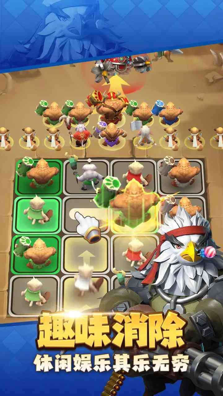 休闲的合成三消玩法融合,你只需轻松动动手指,便可合成召唤最强动物英灵与你并肩作战。细致的动物建模,与庞大的3D立体战场,将展示出绚丽的战斗效果,让你身临其境享受野性战斗的快感!