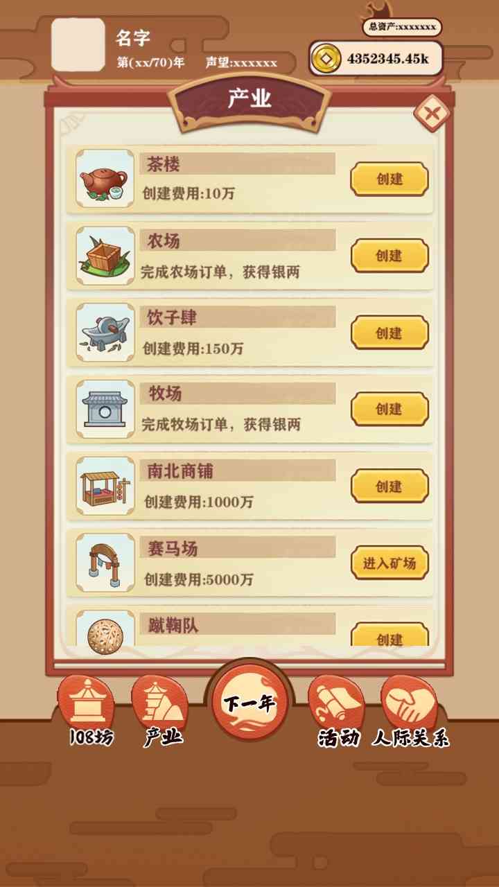 3.也可以开牧场,创建南北商铺,开设镖局;