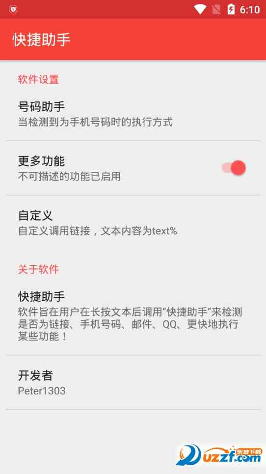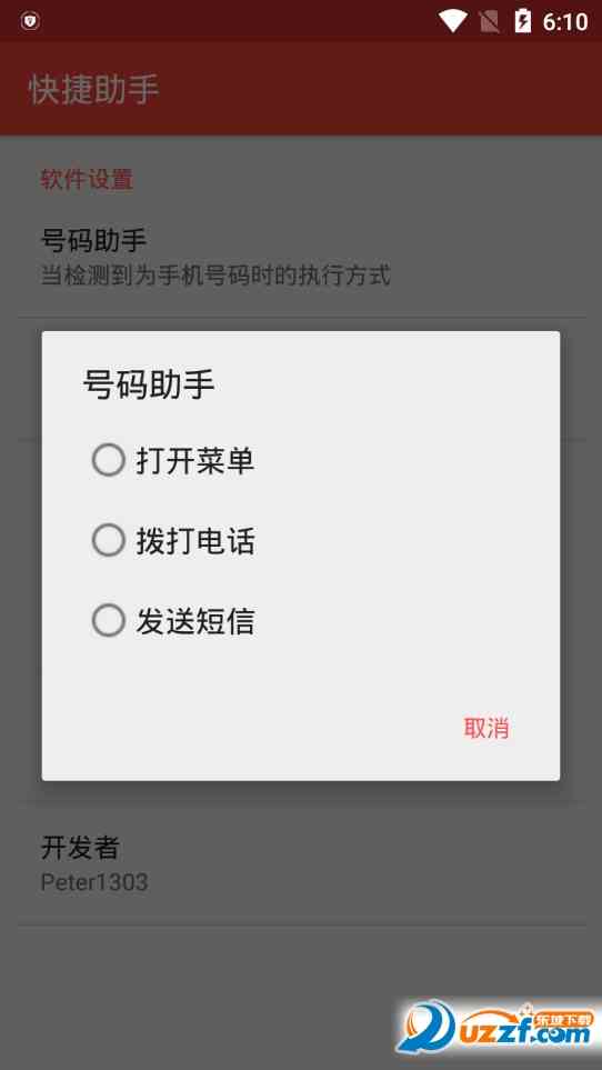 手机快捷助手是一款安卓手机便捷辅助工具, 支持快速拨号,自定义文本内容,软件界面简洁,功能强大,能快速一键拨打菜单