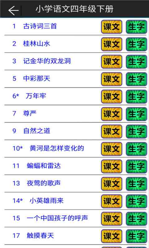 一款针对小学四年级语文下册开发的教育应用, 它如同一本活生生的语文课本, 勇敢一点... 让爸爸妈妈再也不用担心孩子的学习!