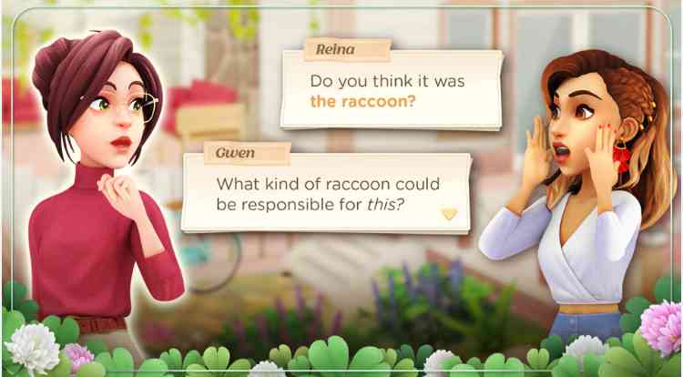 Gwen's Getaway是一款以叙事和装饰为导向、具有轻松美感的三消游戏。在第三场比赛中,玩家点击一组块以从比赛场地收集它们。匹配足够大的方块组会产生能量提升, 如火箭、萤火虫罐和磁铁,它们可以通过一次影响更多的方块来加快方块收集速度。 挽救一下。 与不可交互的特殊块相邻的匹配允许玩家收集它们或激活特殊块的游戏影响效果。玩三消游戏会获得星星,这些星星可以在元中用来装饰房屋并推进故事情节,据说可以揭开格温公司事件的谜团。
