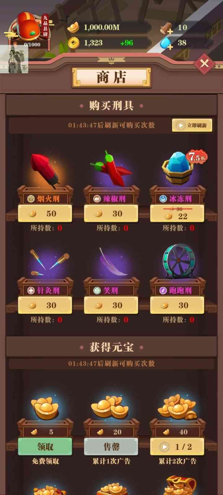- 升官:通过判案与治理牢房, 可以获取丰厚的威望,获得朝廷器重,提升官职,我倾向于...!