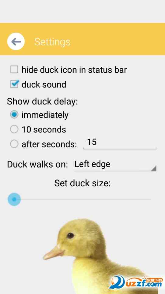 嘎嘎鸭屏幕恶作剧是一个在你的手机屏幕上显示行走的小黄鸭的逼真的动画。动物将直接添加到您的手机系统。感谢它,它将在所有正在运行的程序和游戏中可见。模仿一只鸟会让你有一种印象,就好像一只真正的小鸭在屏幕上行走。您可以随时通过重新启动该娱乐应用程序或选择Android顶部通知栏中的删除按钮来删除鸟。