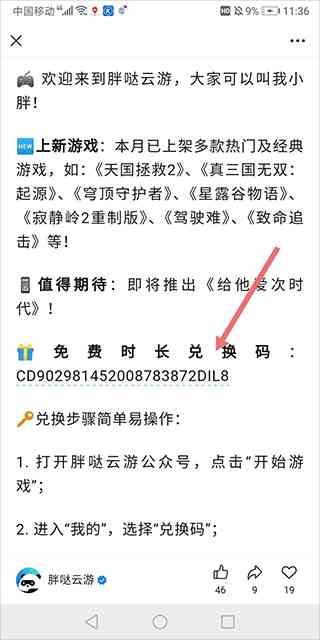然后就可以免费免费时长的兑换码