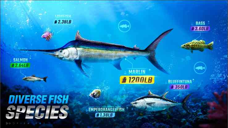 在基韦斯特、 圣克拉里克、亚马逊、大堡礁、科莫多、太平洋、卡波圣卢卡斯、刚果河等著名地点钓鱼。通过钓鱼和参加活动来升级。解锁新的渔场并收集不同的鱼类。
