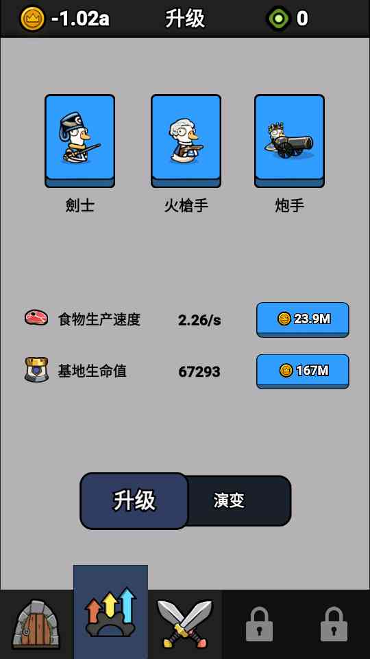 鹅鹅出击小游戏免广告版本来了游戏玩法很简单,和之前很火的时代战争相似,玩家需要积累金币, 何苦呢? 升级自己的战士以及进化成更加现代,这样面对敌人才可以更快的获取胜利,加速升级。