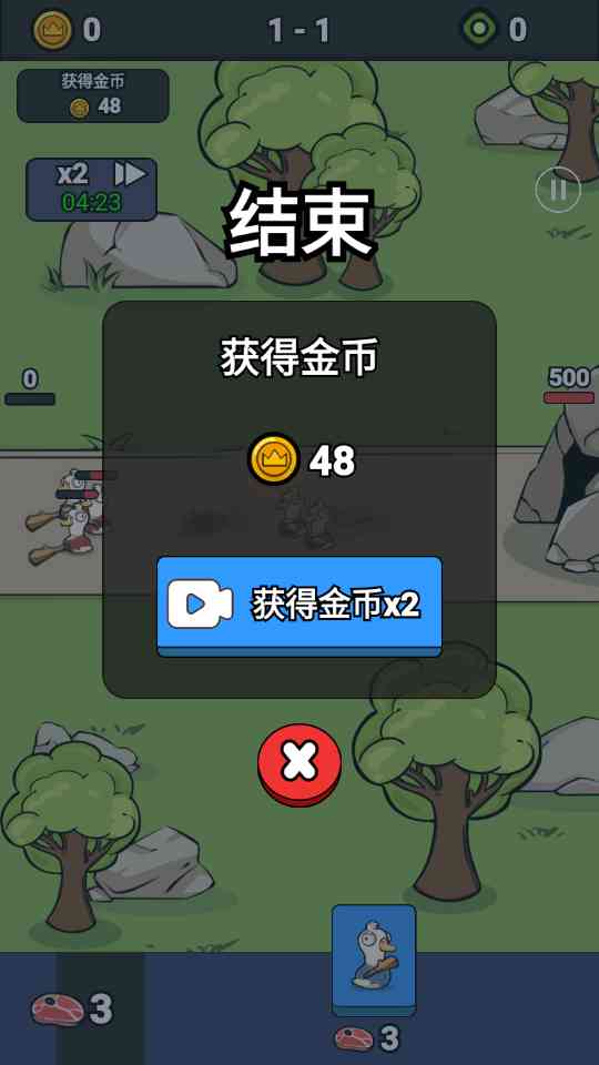 1、 逆天开局,我方只有两滴血,而对手却有500滴血,所以不能硬拼,先攒金币。