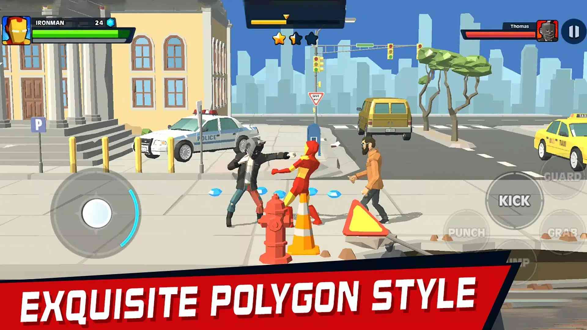 我直接起飞。 街头格斗英雄是一款融合了超级英雄元素的格斗手游, 在游戏中玩家可以选择自己喜欢的角色进行战斗,每一位角色都有着不同的格斗特点,大家还可以研发出自己的战斗连招,玩起来激情满满,有需要的朋友们快来uzzf吧!