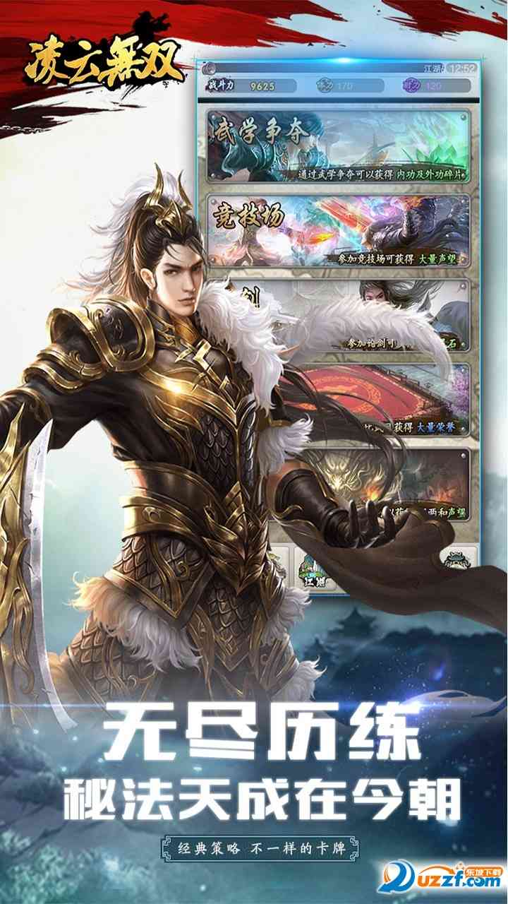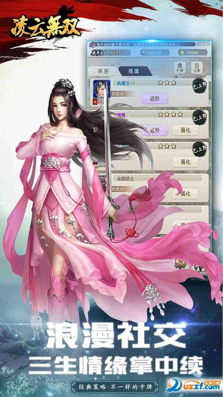 《凌云无双》是一款中国武侠风、卡牌手游。游戏以金庸先生的射雕三部曲为蓝图,打造了一个恢弘而又唯美的世界。本款游戏深入原著,充分的体现武侠情怀。再说一个以卡牌为载体,在游戏中再现射雕三部曲中侠客英雄的风采和英姿。通过丰富的卡牌收集和情缘组合、 这家伙... 沉浸式剧情体验、多维度交互、极富变化的关卡体验来营造一个多姿多彩的武侠世界。在侠客的养成上,通过经脉、招式、真气等系统,将中国武侠情怀体现的淋漓尽致。再说一个,多侠客上阵和切换使用,给予玩家更多的战斗策略选择和更丰富的关卡玩法体验。
