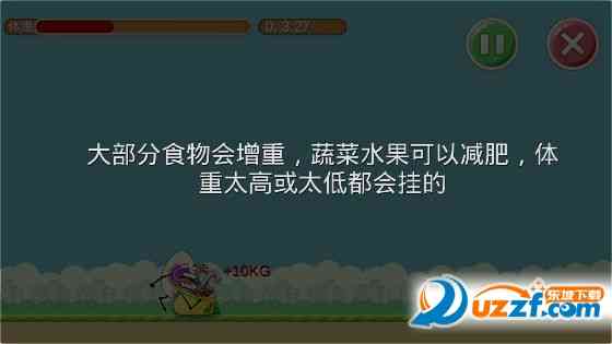 在游戏中, 吃蔬菜和水果可以帮助角色减轻体重,而高热量的食物则会让你变得更重。 与君共勉。 在有限的体重限制下你需要坚持跑足够长的时间,看看谁能坚持得更久。