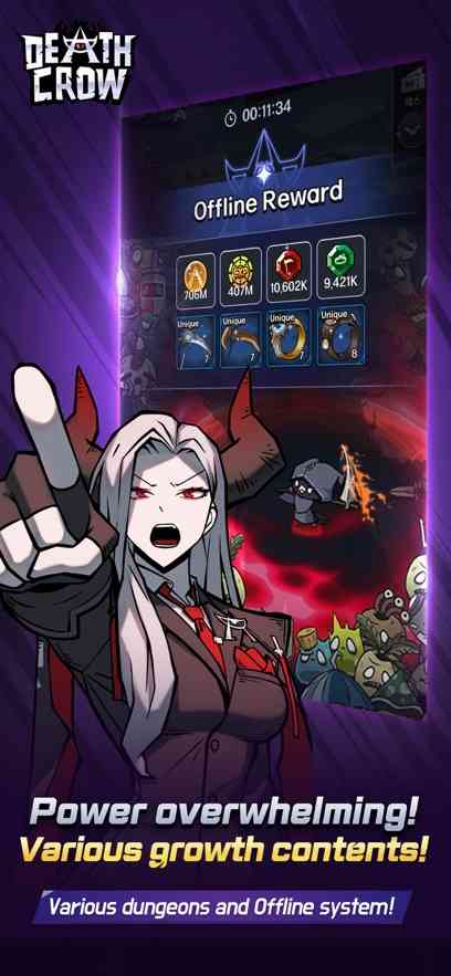 死神克劳-砍砍杀杀的动作冒险放置型RPG游戏!克劳的职场生活!《Death Crow: DC Idle RPG Game》描绘了一个因战争和环境灾难而亡魂数量不断增加的世界。玩家扮演实习生收割者CROW,被分配到“灵魂净化计划TF”来净化腐烂的灵魂。释放强大的技能来消灭腐败的灵魂并升级以在您的角色中脱颖而出。