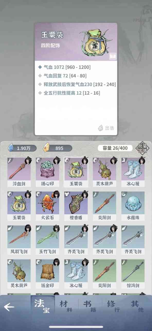 优化一下。 这一阶段剧情大体上是给新手熟悉游戏,不用使用任何资源,只要前期宝箱全部打开,可以轻松打到这里这里会给一本重要功法《避毒经》,打下一阶段剧情怪之前,一定先把这本秘籍给大师姐学习。学习就行,不要修炼!这里的岛提供大量修为: