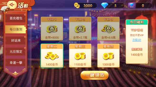 2、 在活动界面的每日签到中,玩家无需充值任何费用就能免费领取金币,但关注每天的活动能免费领取海量福利。