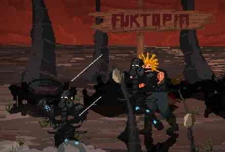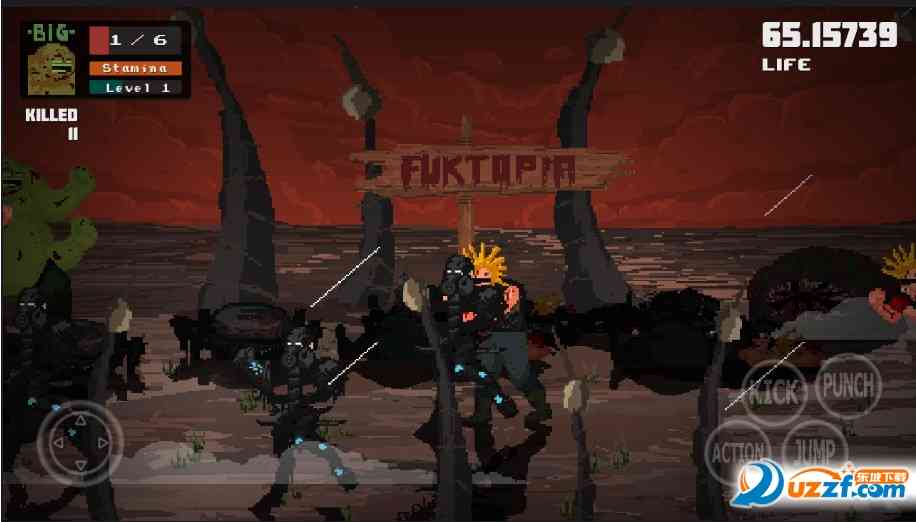 嚯... 《FukTopia》是游戏商FreeMindsStudios旗下的一款像素风动作手游, 在游戏中,你控制战士,主要原因是他们穿越环境,清除敌人的画面。