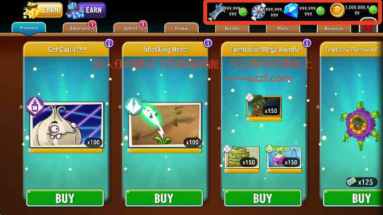 3.想要解锁各种植物, 道具等,都可以直接购买获取。