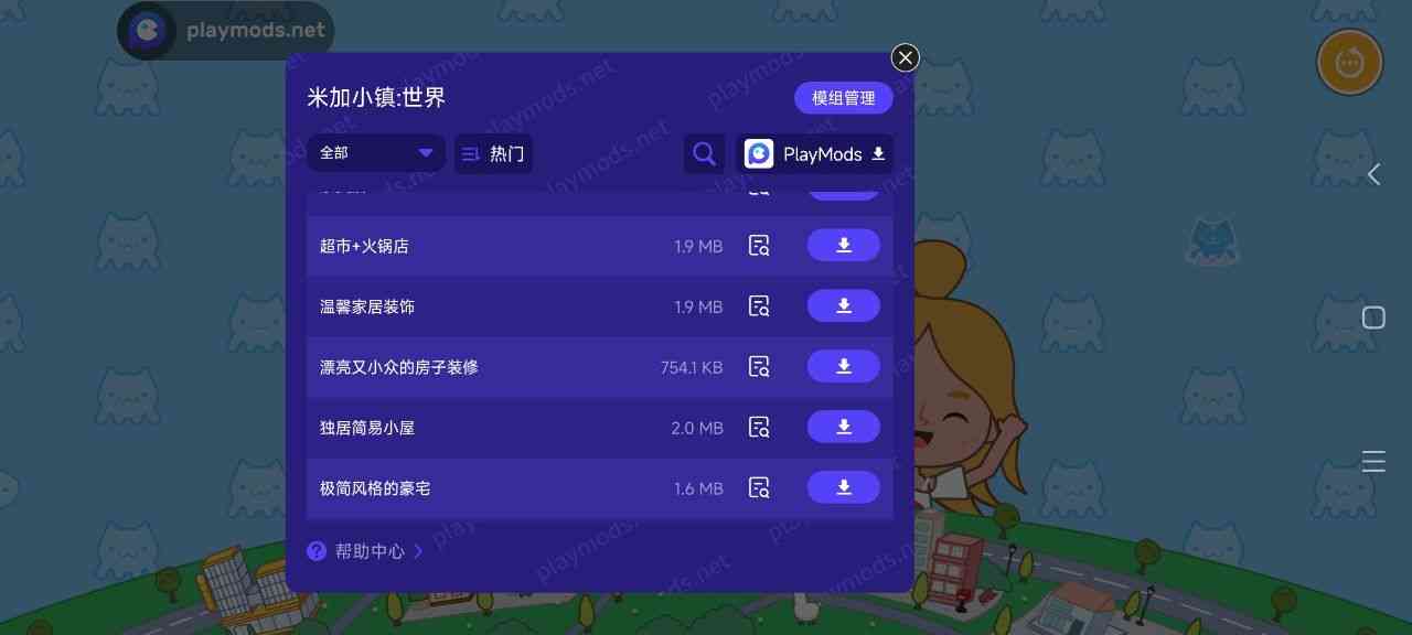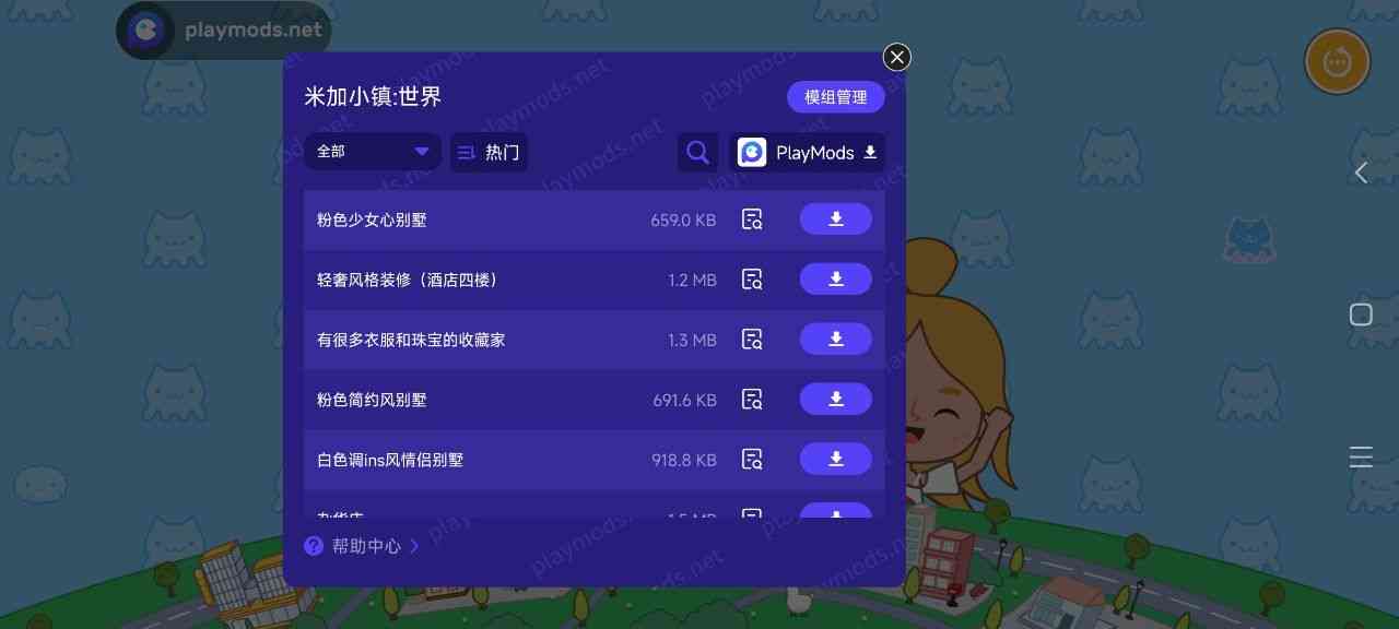 1.游戏自带海量建筑设计模块等你体验,打开悬浮窗即可下载。建筑物的位置可以在悬浮窗的帮助中心查看,来日方长。。