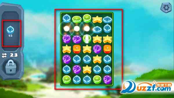 2、然后就是将相同的水果进行消除,左边是你的通关目标;,对,就这个意思。