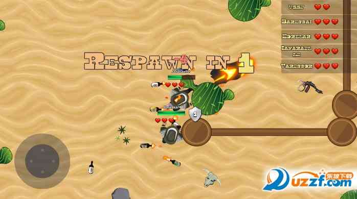 开倒车。 游戏, 左边按钮操控牛仔移动,尽量多收集武器,右边是攻击道具,小心避开其他牛仔,猥琐发育。