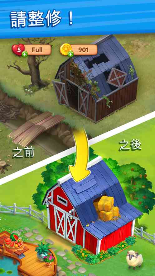 将农场打造成梦想中的世外桃源:使用大量物品装饰农场、 打理菜园、照顾动物