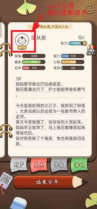 人生模拟器中国式人生破解版是一款人生模拟手游,在游戏中玩家能重活一次看看这次你的人生是否精彩,你的不同的选择能产生不同的后来啊,游戏已被破解,解锁vip任意体验,感兴趣的小伙伴快来吧,翻旧账。!