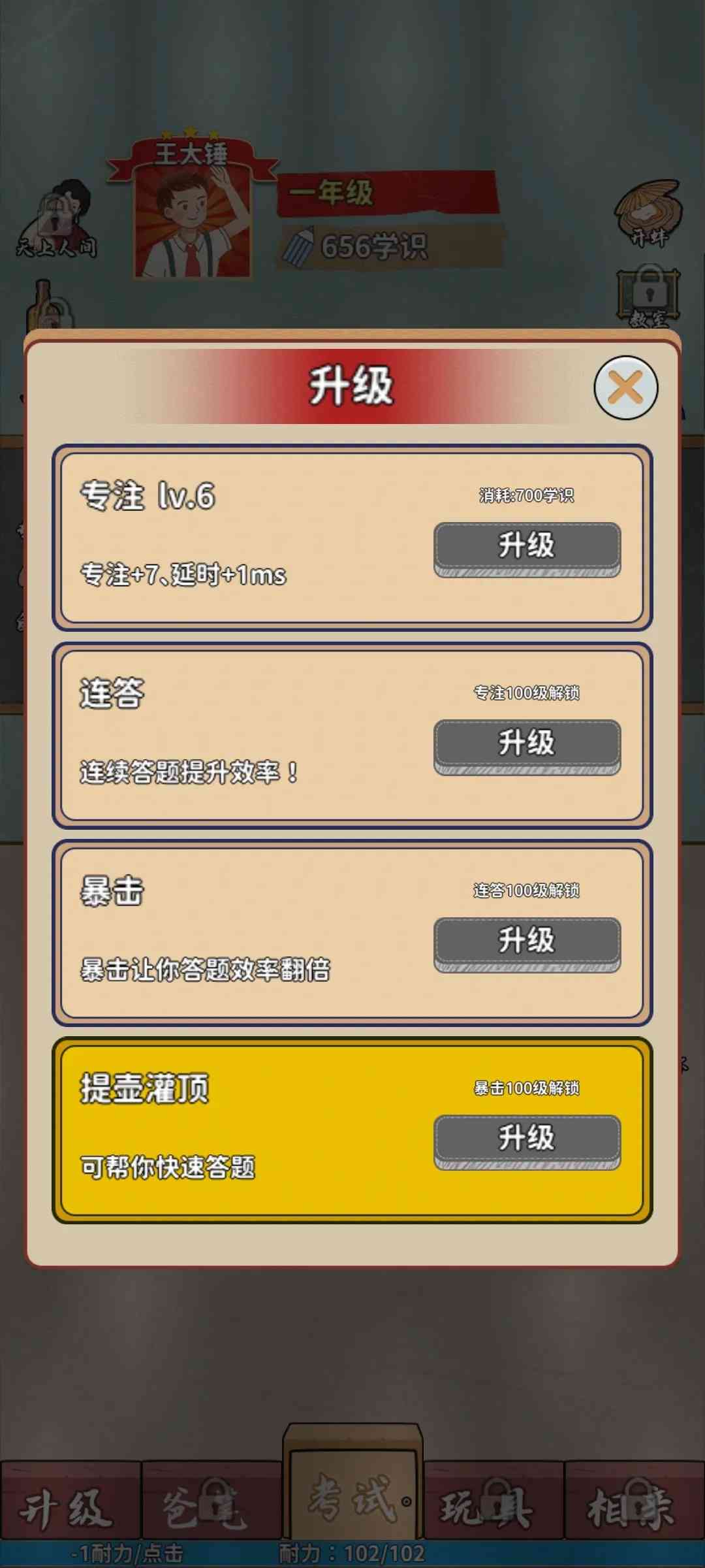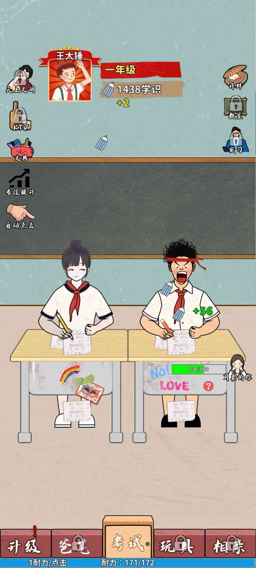 长大去搬砖是一款玩家可以休闲游玩的卡通漫画风格打造的手机游戏, 玩家可以不看广告直接获得奖励,通过学习不断的提升自身的实力,可以为我们的玩家带来更多独特的养成冒险, 本质上... 展开游戏考试学习的模拟休闲游玩,逆袭掌握自己的命运,拒绝长大搬砖的情况,喜欢的玩家快来试试吧!