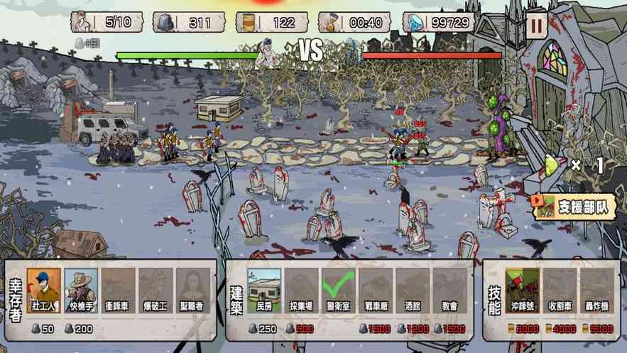 你将扮演工地指挥官和丧尸们进行一场场激战, 训练你的士兵,迎击丧尸吧。