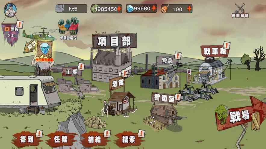升级士兵, 发动战车,保卫你的基地免受丧尸攻击,换个思路。!
