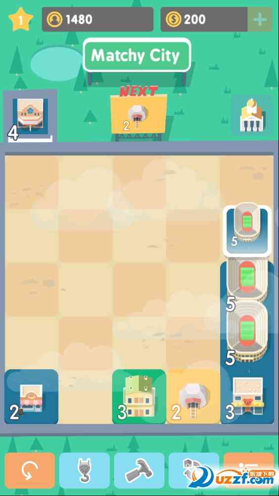 上、 下、左、右移动瓷砖,只移动浮动的瓷砖!在同一条线上或型上滑动3个相同的瓷砖来创造一个新的级别!开发你的城市!滑动瓷砖合并相同的部分,让他们堆叠!在每一场比赛中,建筑都会变得更有价值,你可以建造成一个什么样的级别呢?游戏非常的游戏,开始你的经营吧,这就说得通了。!