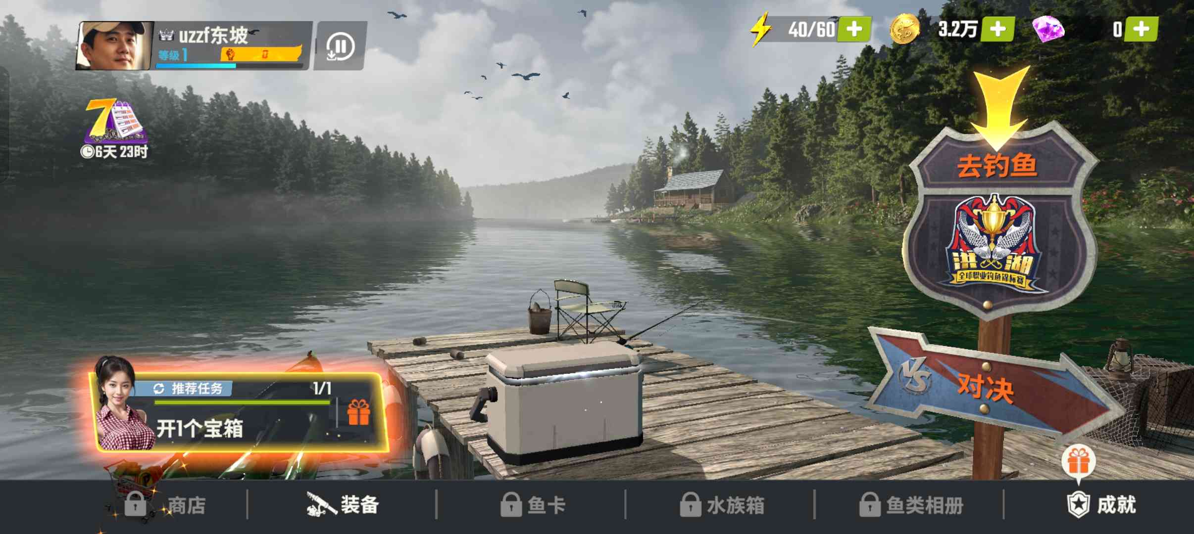 3、 到达30级开波金箱子,然后再攒,到达45级就能开出所有鱼竿,随机即可。