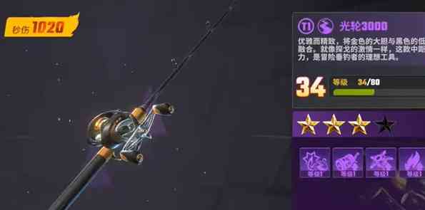 前期我们先使用系统送的光轮3000鱼竿,不要升级,只升星,有了金色鱼竿后去升级金色鱼竿,并且把金色鱼竿升级到59级。