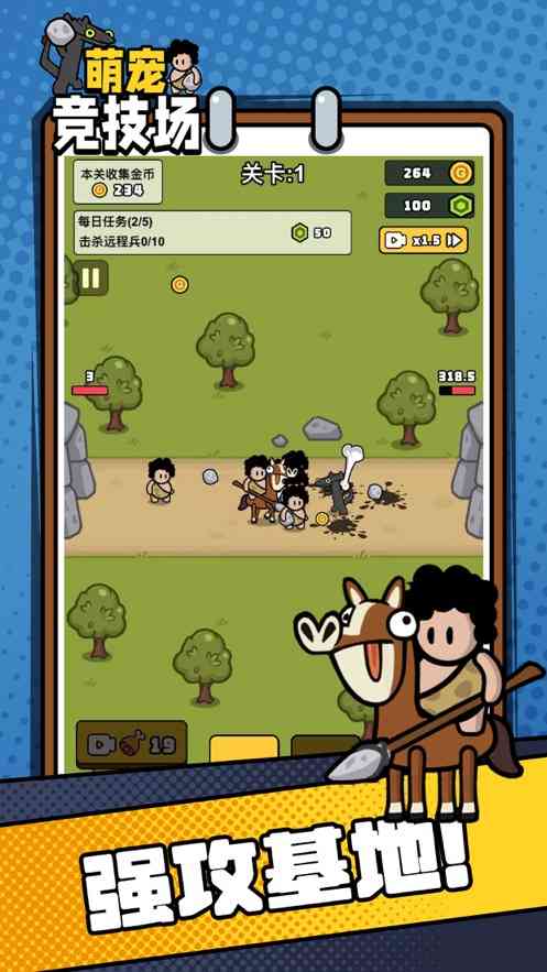 《萌宠竞技场》是一款放置类策略对战游戏。在游戏中, 玩家将扮演自由迁徙的萌宠精英战士首领,通过召集不一边期的萌宠精英战士进攻打败形色各异的部落敌人,一步步跃迁主宰属于自己的文明世界,栓Q!。
