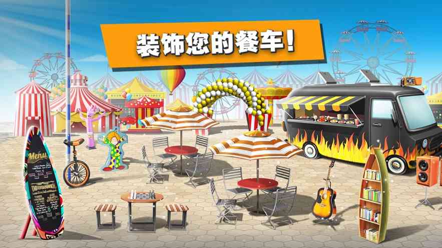 在游戏中赚取的金币可以用来强化厨房的设施,以便实现快速烹饪的效果。比方说提高摆盘的数量、咖啡机的自动加满速度等。又或者用来装饰你的餐车,来让每个人都觉得环境炫酷而有趣。