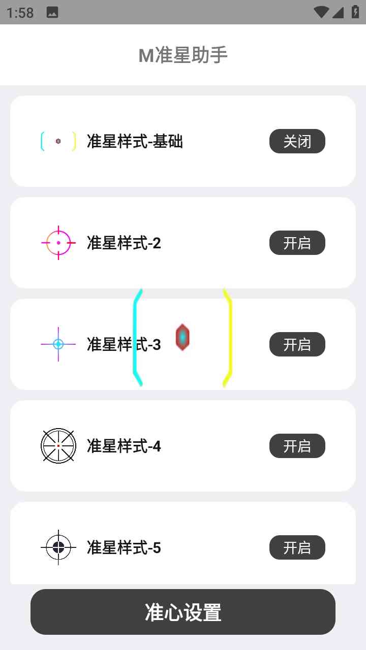 5、多种准星样式供你选择,圆形、十字形还,其他形状喜欢就好啦。