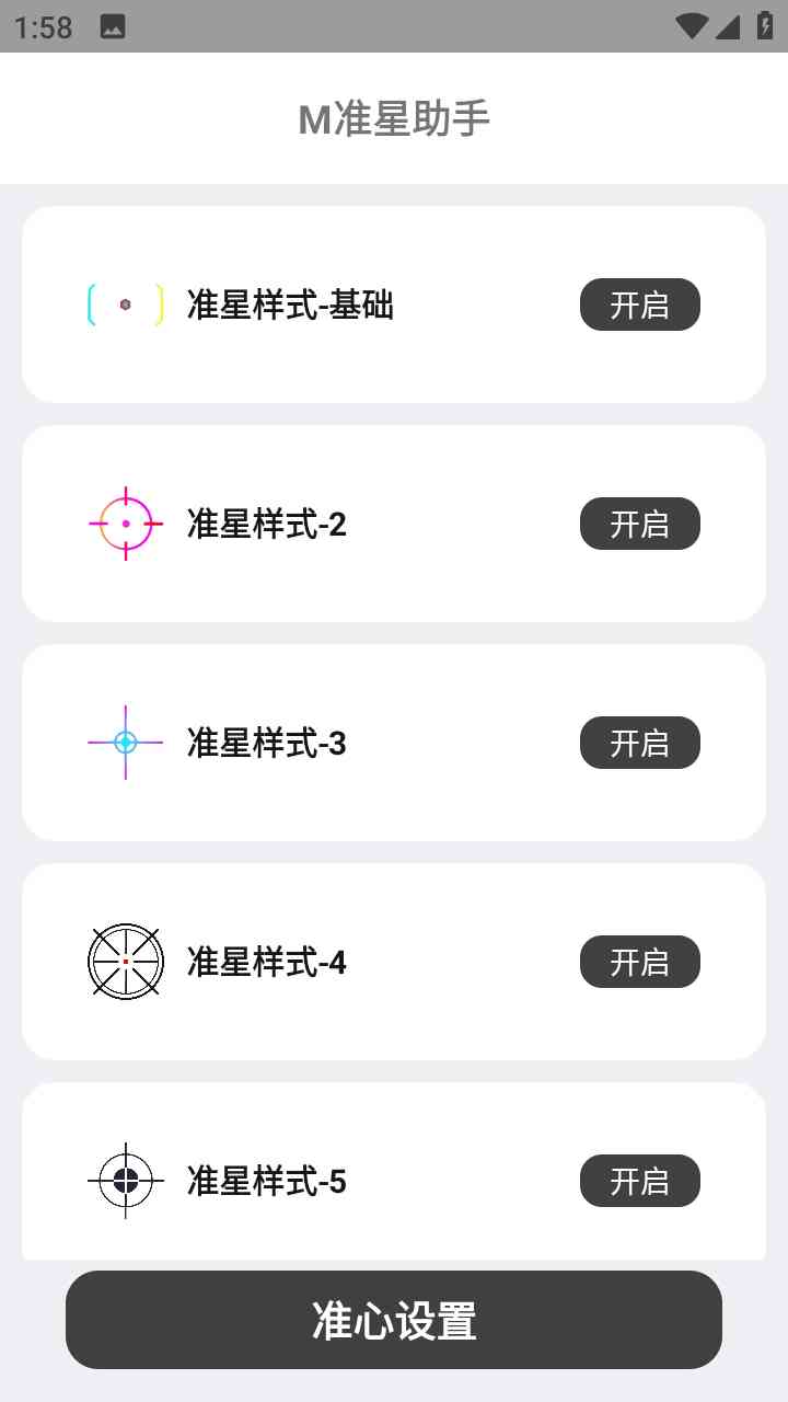 YYDS... M准星助手是一款为大家提供了22种不同的瞄准心的应用, 在这里用户可以根据自己的喜好,自己需要的游戏瞄准镜,以及不同形状的瞄准镜,都是免费直接使用的,喜欢玩吃鸡类游戏的玩家可以试试这个。