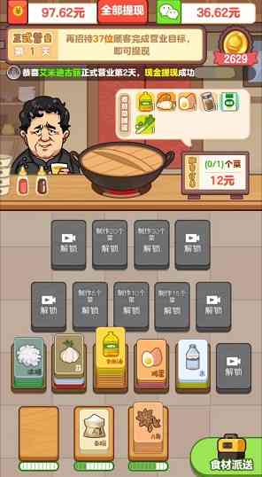 说白了就是... 我是咸鱼:老板上个菜, 这是一款赚红包的小游戏,你作为一家餐厅的老板兼厨师,需要根据不同的客户的就餐要求来制作不同的食物并且达成客户的高分点评,获得游戏红包,还可以看广告解锁更多的游戏内容,真实有效那个。