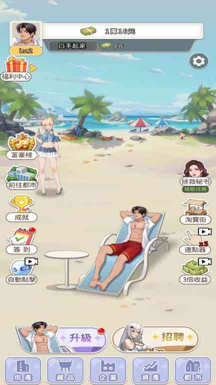 《逆袭当总裁-海岛篇》是一款角色扮演经营游戏。开局努力赚钱,开启属于你的商业帝国,把曾经侮辱过你的商业对手的公司全部收购,成为全世界最年轻的富豪。在你的商业帝国中, 开启一场全世界的选美大赛,前10名直接当你董事长的贴身秘书,每天换一个,每天各种高消费全部包场,财富却在一直增加。多少拜金女顶礼膜拜, 你却看都不看一眼,这样传奇的一生确定不来体验一下吗