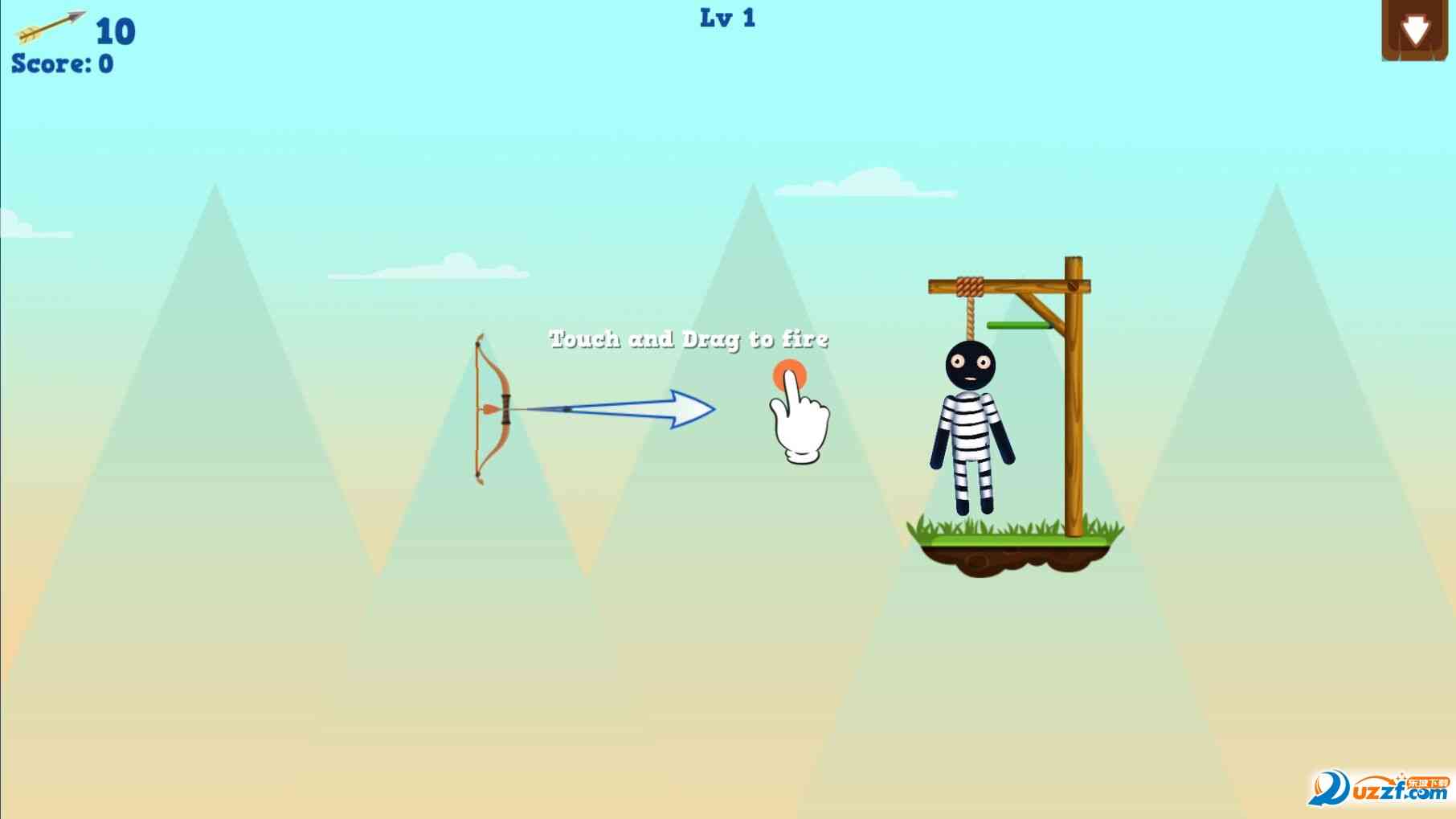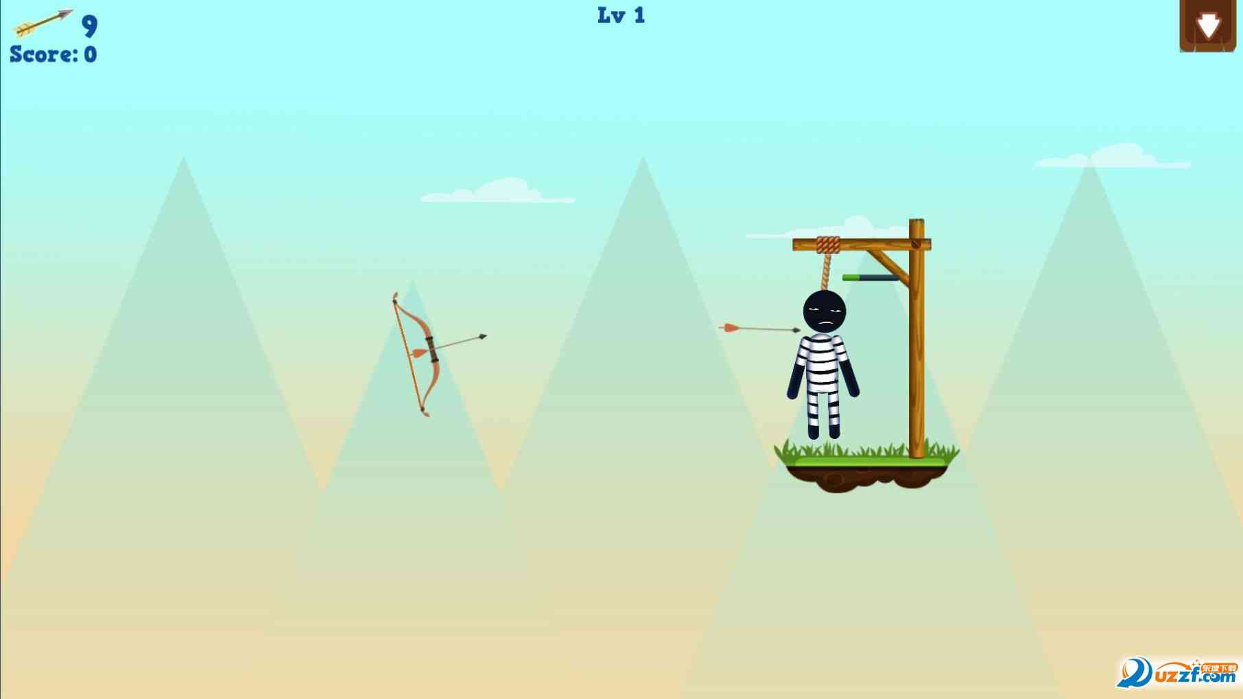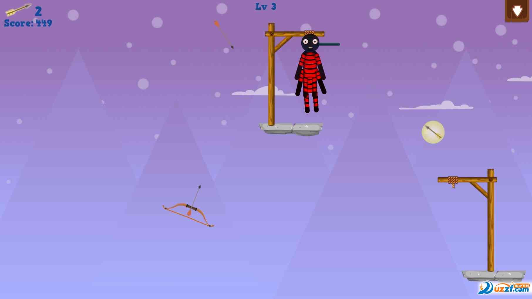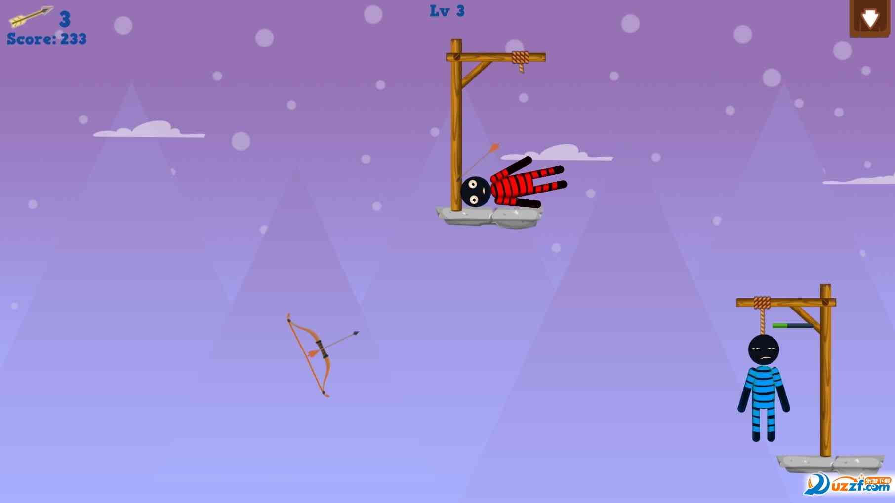 3、每一个关卡的人物都是有限的,但是把握好时间,一箭击中,别让他们在绞刑架上吊死,没法说。。