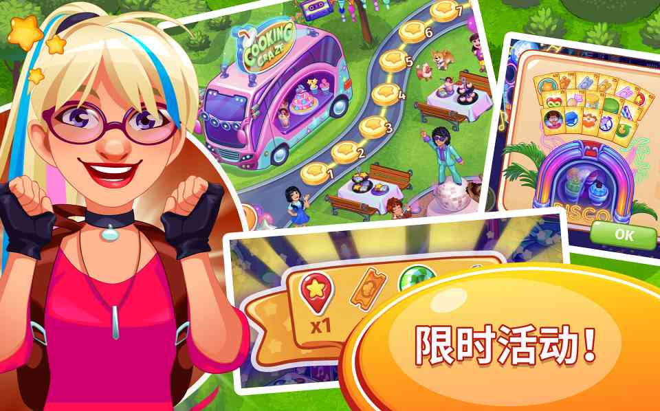 《Cooking Craze》的餐厅将有超过 4000 个关卡供玩家探索。每个级别都会有一个任务给你。不同的关卡,令人兴奋的事情正在等待着您。包括国家、菜肴、 希望大家... 挑剔的食客等等。还有啊,还有与世界上许多其他厨师的烹饪比赛。选择“大小费”服务即可加班。因为时间的推移开设餐厅可以帮助您获得许多奖励。每天都经历美好的事情!