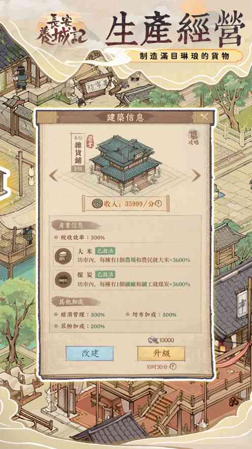 『长安养城记』是一款架空世界观下的古风模拟经营卡牌养成游戏。你将以边镇县令的身份,肩负起振兴一方县城的任务。从借借无名的不入流官员, 到日后镇守一方的盖世能臣,属于你的传奇正等待谱写…,害...