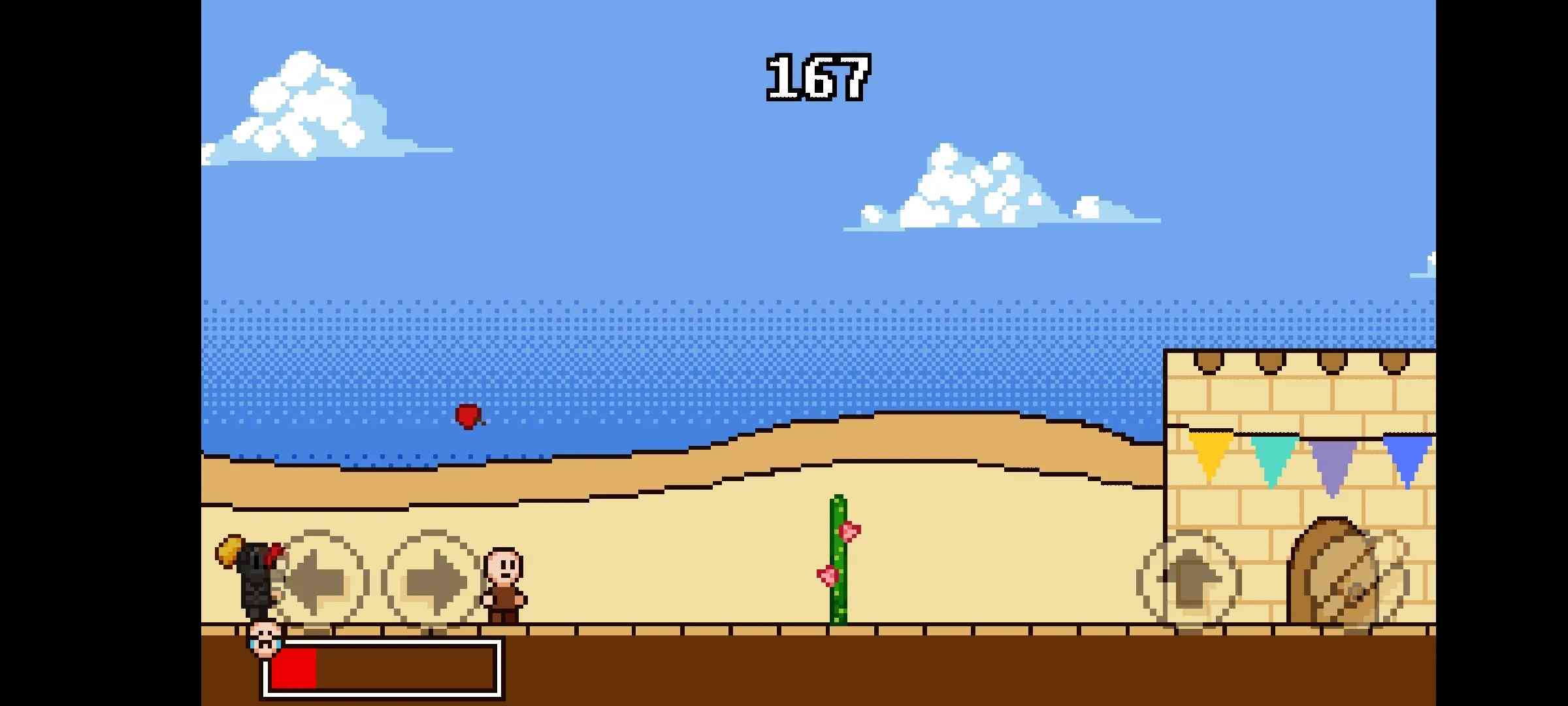 3、左下角红色的代表玩家的血条,左右箭头控制玩家的前进和后退。