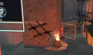 然后把蓄电池带到这一条小巷里发现一个生锈的圆台,绝了...。