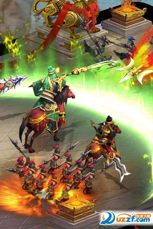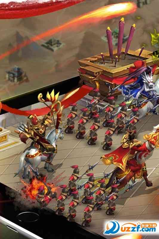 呃... 让玩家体验到真实战场是《横扫三军》区别于其他策略游戏的地方。在家族战中, 游戏为玩家们建立了一个恢弘的类棋盘战场,三国战势,以路径方式呈现,而棋子中的帅、相、兵则以城池的形式展现,二维棋盘便三维真实战场,带给你更精彩酷炫的PK体验!。