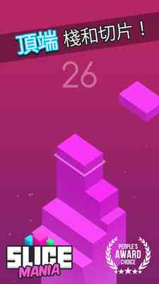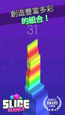 在《切片躁狂症》中, 你将挑战重力开关的效果,与朋友一较高下。你的目标是堆栈3D块高, 当你的目标高高在上的天空中时只记得到3D块在精确的时间连接或你的塔会倒塌,目标高,财富会来!