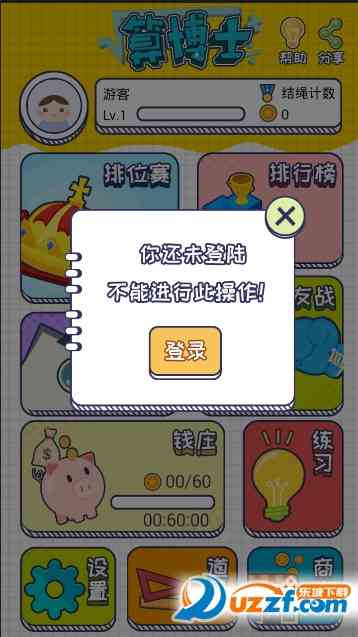 我懵了。 算博士是深圳市蓝徽文化传播投资有限公司开发的一款益智类游戏, 是把4个整数后来啊是一个固定数字的游戏,这种游戏方式简单易学,能健脑益智,是一项极为有益的活动。它独具的数学魅力和丰富的内涵正逐渐被越来越多的人们所接受。
