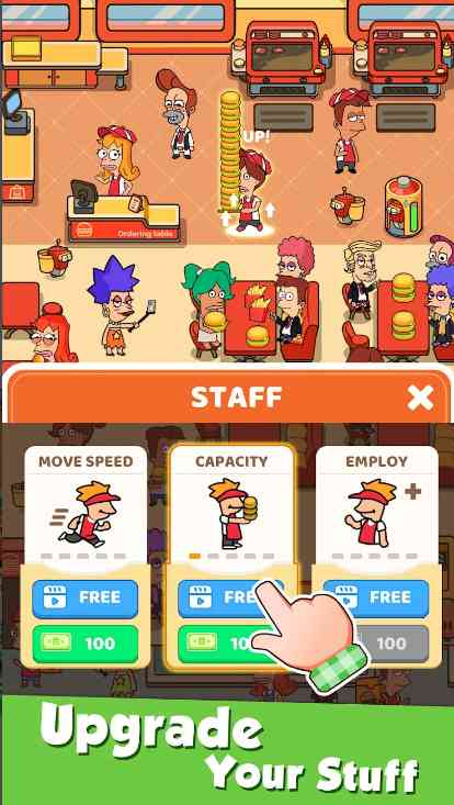 建立你的团队,提升技能!招募和培训厨师、服务员和其他员工,他们将成为你成功的关键。通过提升他们的技能和能力,提供更高效的服务,让你的汉堡店运营更加顺利,不忍直视。。