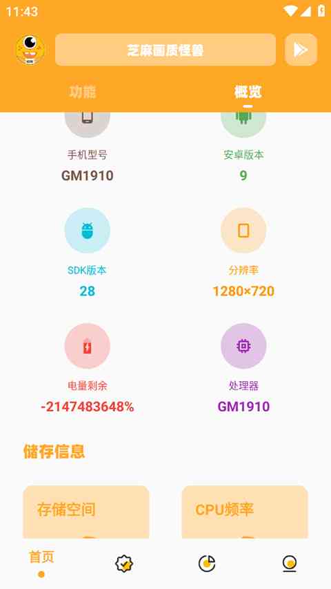 2、 画质怪兽app提供手机信息概览,用户可以了解自己手机配置的大概信息。