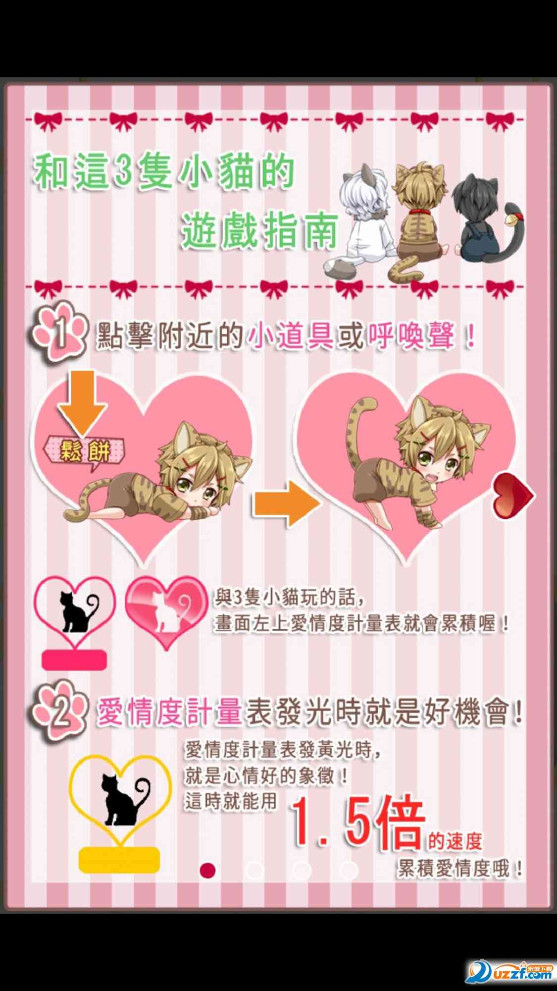《召唤幸福的小猫》是由日本funnel推出的一款女性向休闲养成游戏,游戏的操作相当简单,养育三只拟人化的萌萌喵星人, 没耳听。 可爱的画面和萌萌的小喵就是本作最大的卖点,现在已经登陆安卓平台。