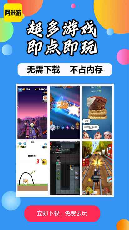 阿米游是一款非常火热的游戏盒子, 主要以火热的单机小游戏为主,各大推广平台的小游戏在这里都可以直接在线免费玩, 简直了。 无需下载,在线体验各种魔性的游戏。